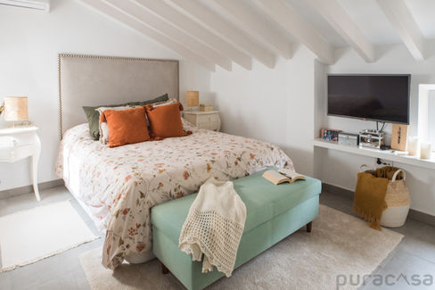 En el Proyecto Purabuhardilla, nos enfrentamos al reto de infundir calidez y funcionalidad en un ático ya amueblado, siguiendo el deseo de nuestra clienta de revitalizar su hogar con toques de color.